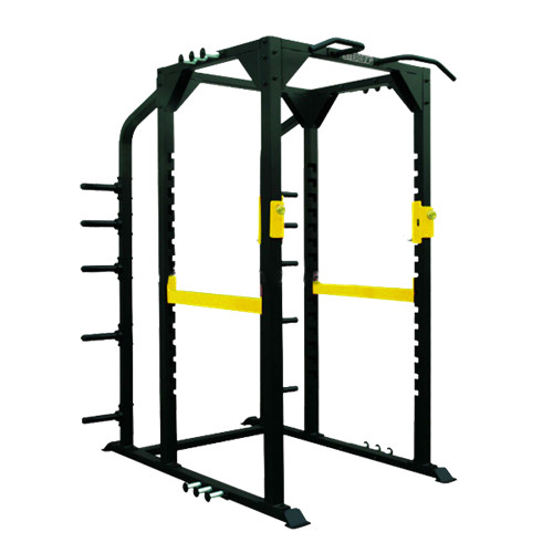 廣州博菲特健身器材有限公司生產的商用多功能框式深蹲臥推架,配件包括:杠鈴軸,防滑手柄,帶子附件,可折疊腳踏板等