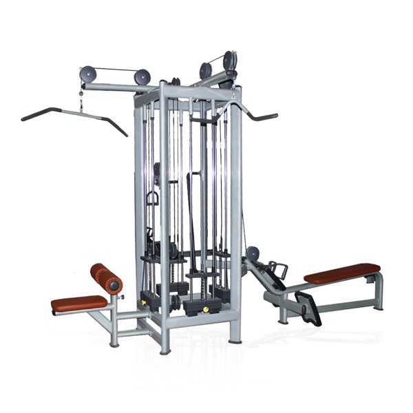 高端健身房四站位綜合訓練器,四人站多功能大型健身器材生產廠家。開健身房私教工作室就找廣州博菲特,您需要的健身器材我們都有