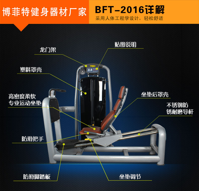 開高端健身房必備室內商用坐式蹬腿訓練器,廣州博菲特健身器材有限公司,華南地區最大的商用健身房室內健身器械生產廠家