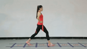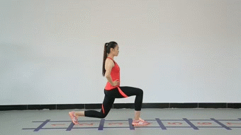 動作解析:首先雙腳平行站立,向前邁出一大步下蹲至前腿膝關節呈90度,然后迅速蹬起至起始位置,不做停頓,向后后退一大步,再次發力蹬起至起始位置。這是前后向弓箭步結合的練習,向前鍛煉伸出腿的力量,向后則鍛煉支撐腿的力量,也就是說這一個動作可以同時鍛煉雙下肢的力量,也對于身體協調性提出了較高要求。