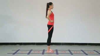 動作解析:首先采取前后腳站立,收腹挺胸,雙手叉腰,然后全力向上縱跳,在空中交叉換腿,穩定落地不做停頓,再次跳起。跳躍動作對下肢爆發力是極好的訓練。