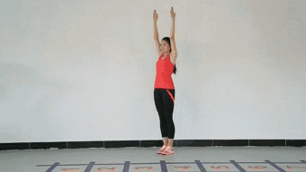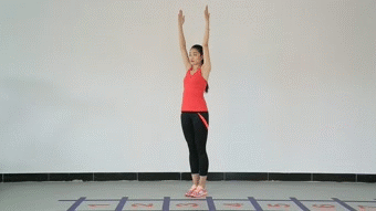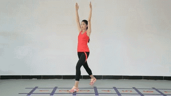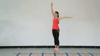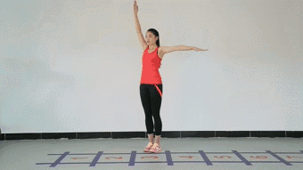 動作解析:由單手上舉變雙手上舉,看上去動作變化不大,卻大大增肌了動作難度,對于腿部和腰腹的力量、穩定性、協調性都是極高要求。